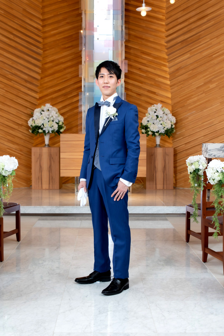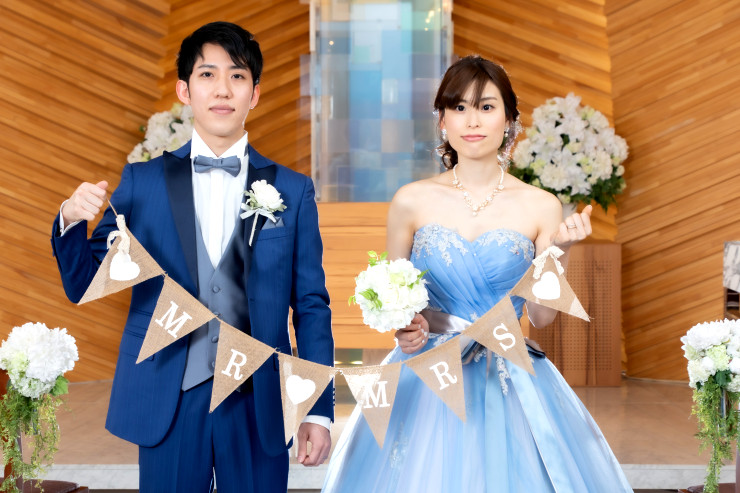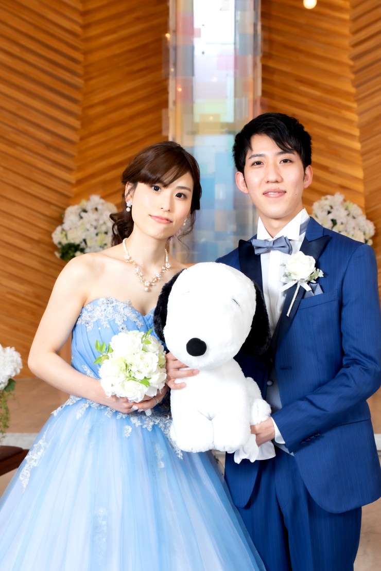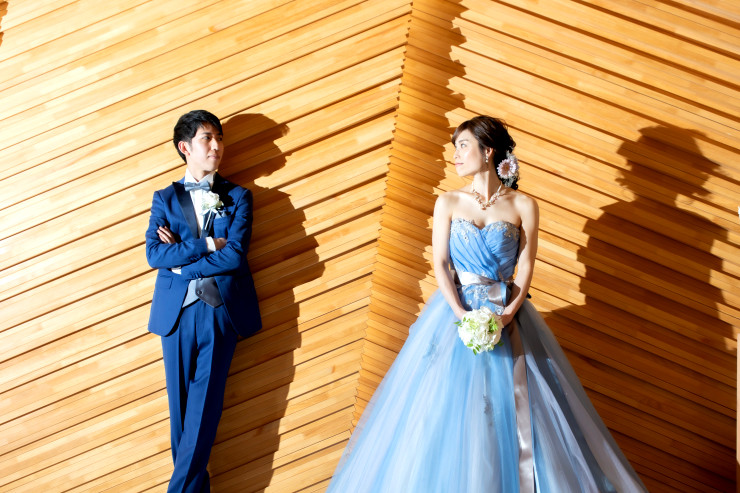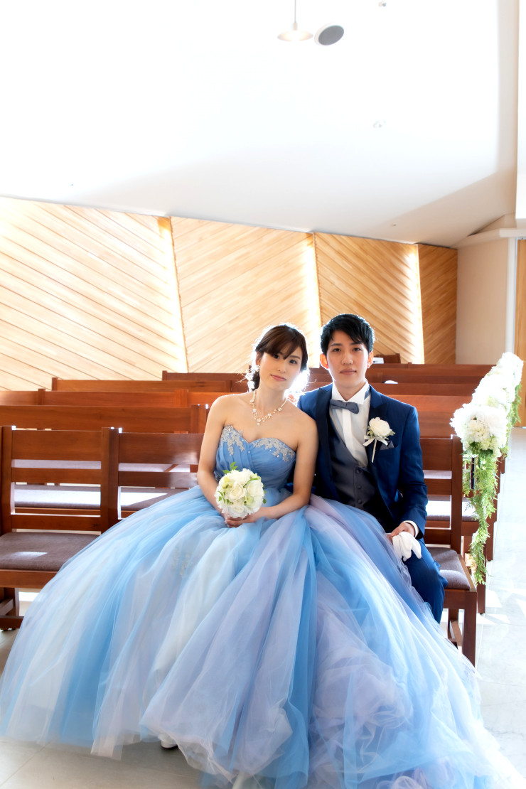 ブルーのドレスとタキシードがとてもお似合いです♥