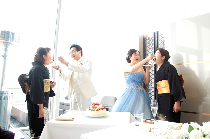 今回は挙式演出でケーキカット&サンクスバイト&ファーストバイトを行ったお客様をご紹介したいと思います。