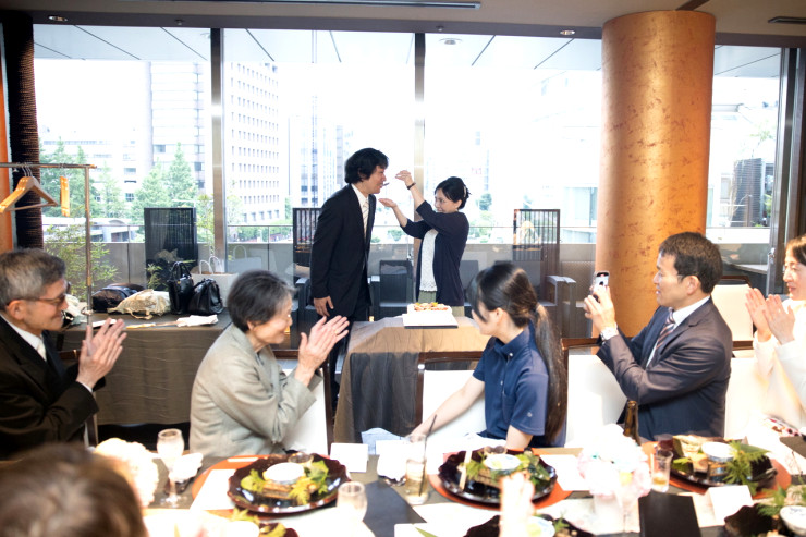大きな披露宴、、衣装は着たまま親族だけでご会食、、2人で記念のお食事、、